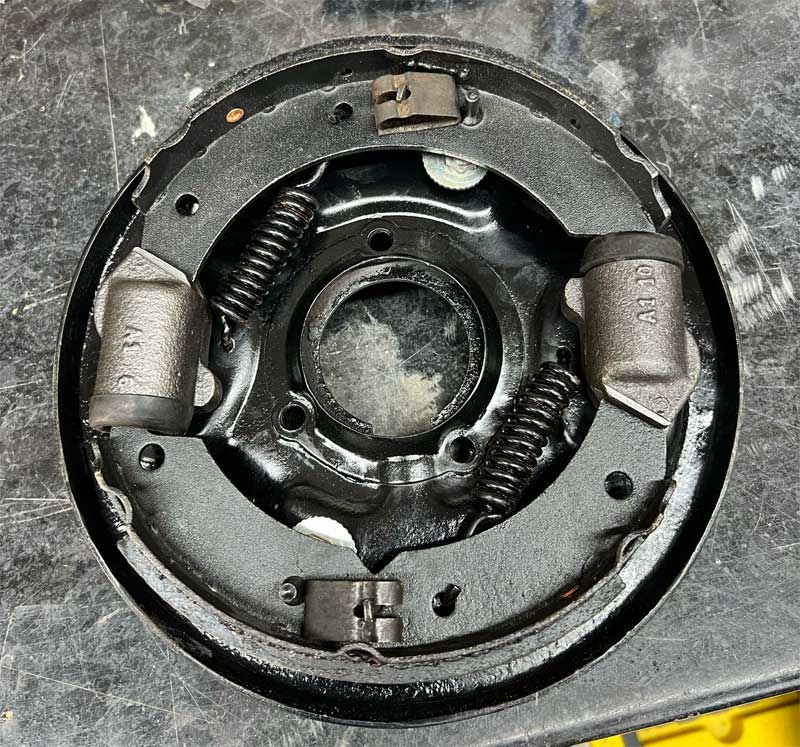 Dom refurbed backplate, new cylinders and adjusters and Mike Dent shoes April Same all round