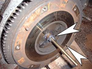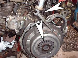 flywheel, whilst using a spanner to undo the