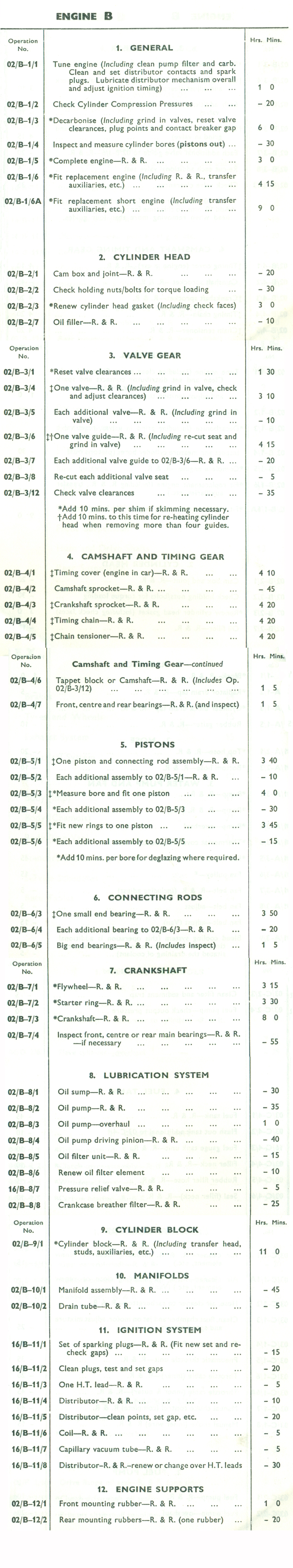 This are is a time shedule used by Rootes Engineers to quote jobs.